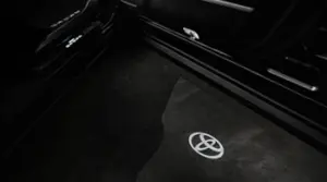 Logo Side Puddle Lamps feature Toyota logo projected below the door opening in bright white light.